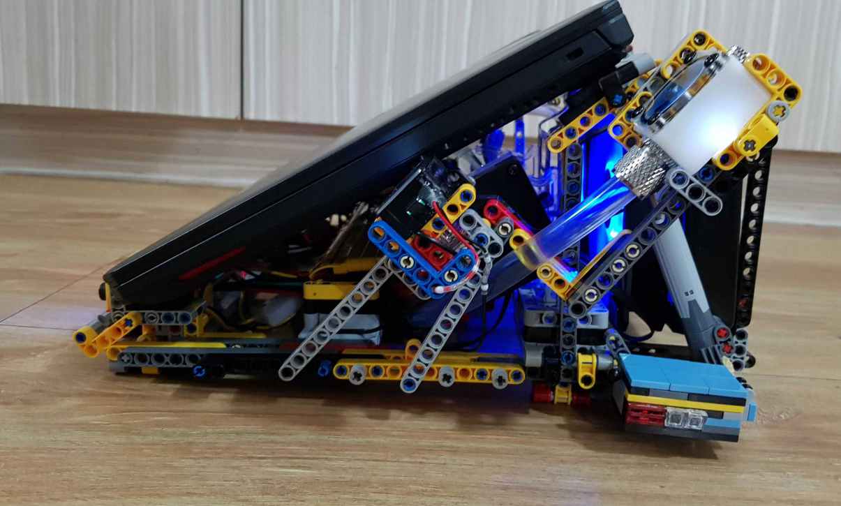 早前在網上看過一些用積木製作的筆電架,家中剛好有沒用的積木,自己也試做了一個,除了顏色搭配外,看起來還不錯,然而筆電架對於降溫是有限的。