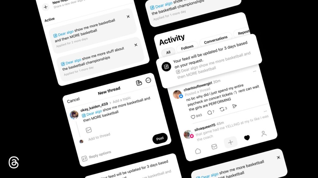 - Threads 推出 AI 新功能「Dear Algo」:發文就能控制動態牆資訊