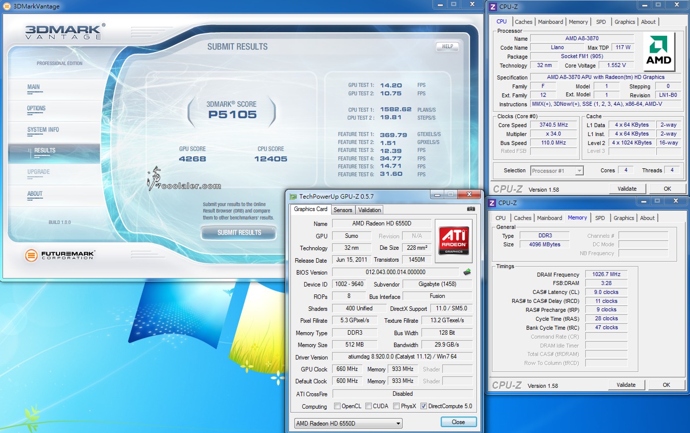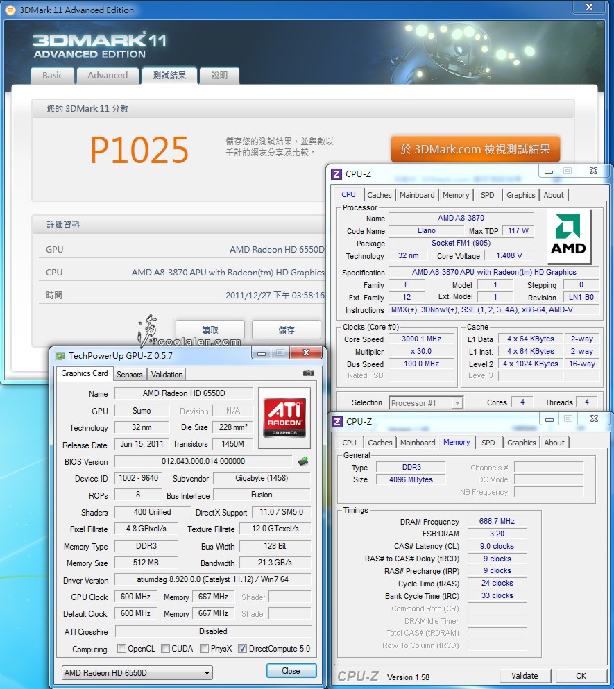 基本測試的差異並不大,畢竟A8-3870K與A8-3850是相同的規格,預設值兩者僅差100MHz的時脈。