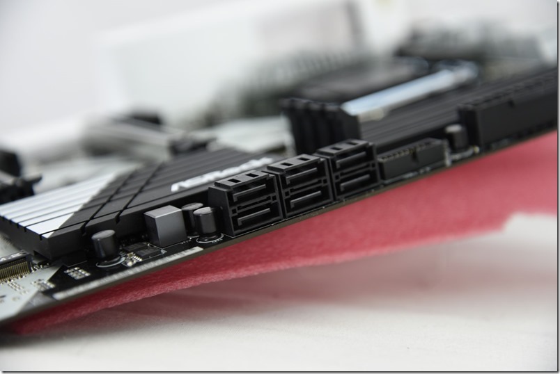看似走簡約路線的PCH散熱片,其實也加入了RGB的炫麗燈光行列。另外就是前面提到的SATA EXPRESS在這張主機板上已經沒有了,還給大家習慣的6個SATA插槽。