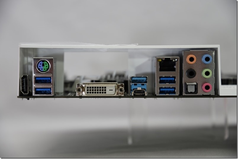 保留了PS/2 PORT,其他有HDMI、DVI、USB 3.0 x 5 + TYPE-C、USB 3.1 、INTEL GIGALAN、7.1 聲道高傳真音效。