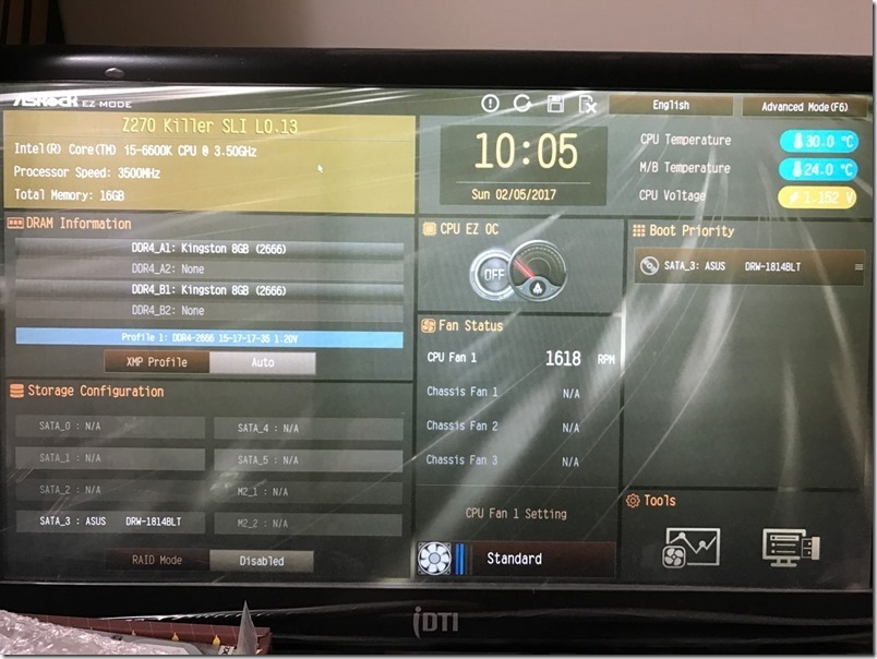 當然還是有POWER USER MODE的BIOS畫面,順便看一下金士頓HyperX PREDATOR PCIe 480GB SSD有沒有正確卻抓到!