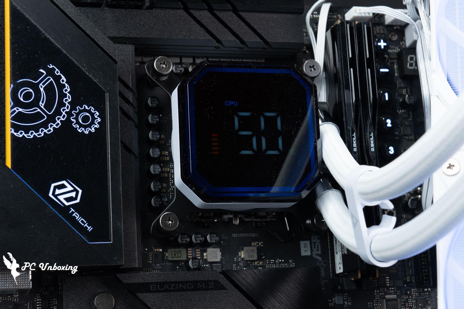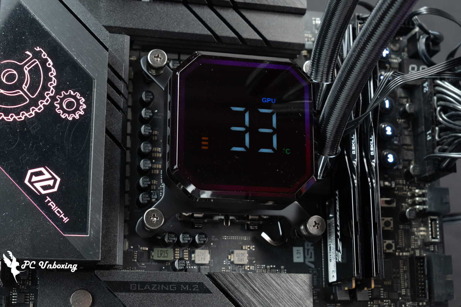 △ 八角形水冷頭螢幕外圈會有 ARGB 燈光效果,這邊的燈效會跟隨 GIGABYTE、ASRock、ASUS、MSI 主機板燈效來決定。