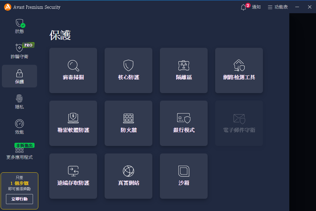 面的防病毒與上網保護,適合個人與家庭使用。