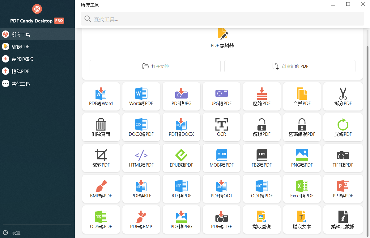 Icecream PDF Candy Desktop Pro 將功能分為兩大類:「轉換為PDF」和「從PDF轉換」。