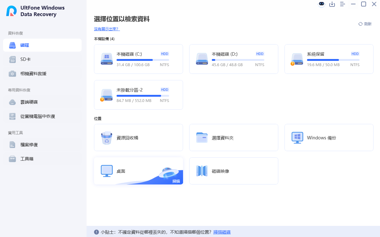 UltFone Windows Data Recovery 一款功能全面、操作直覺的資料恢復軟體,用