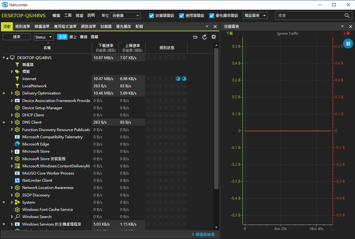 監控、限制、和管理各種應用程式的網路流量。無論是單個應用程式的下載和上傳速