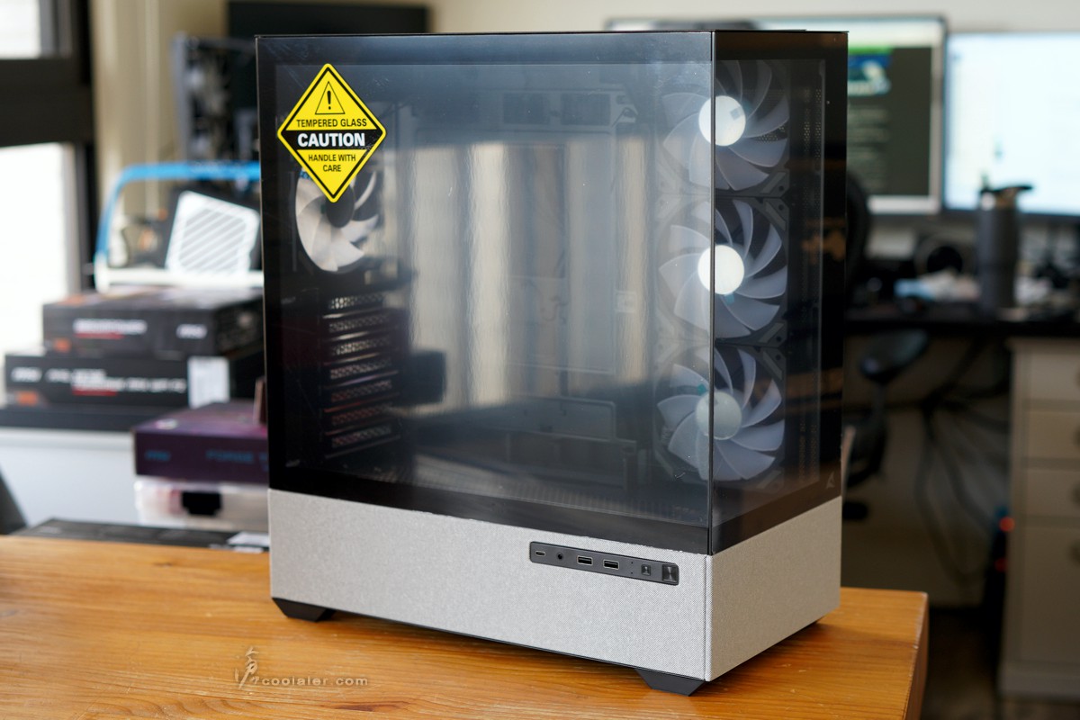 移除膠膜後透亮許多。Sharkoon AK7 ARGB 為標準中塔型尺寸,側板與面板採用了玻璃材質,呈現 270 度景觀海景房,下身則是採用了灰色的布料材質貼皮。