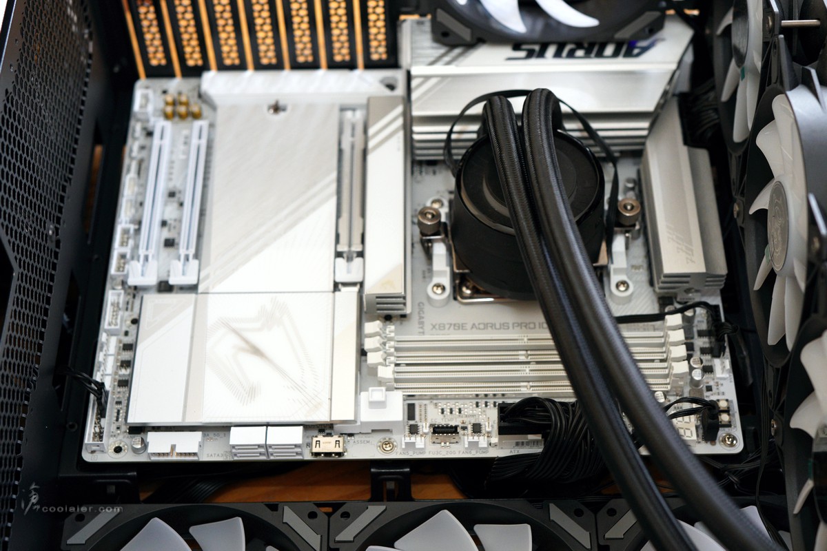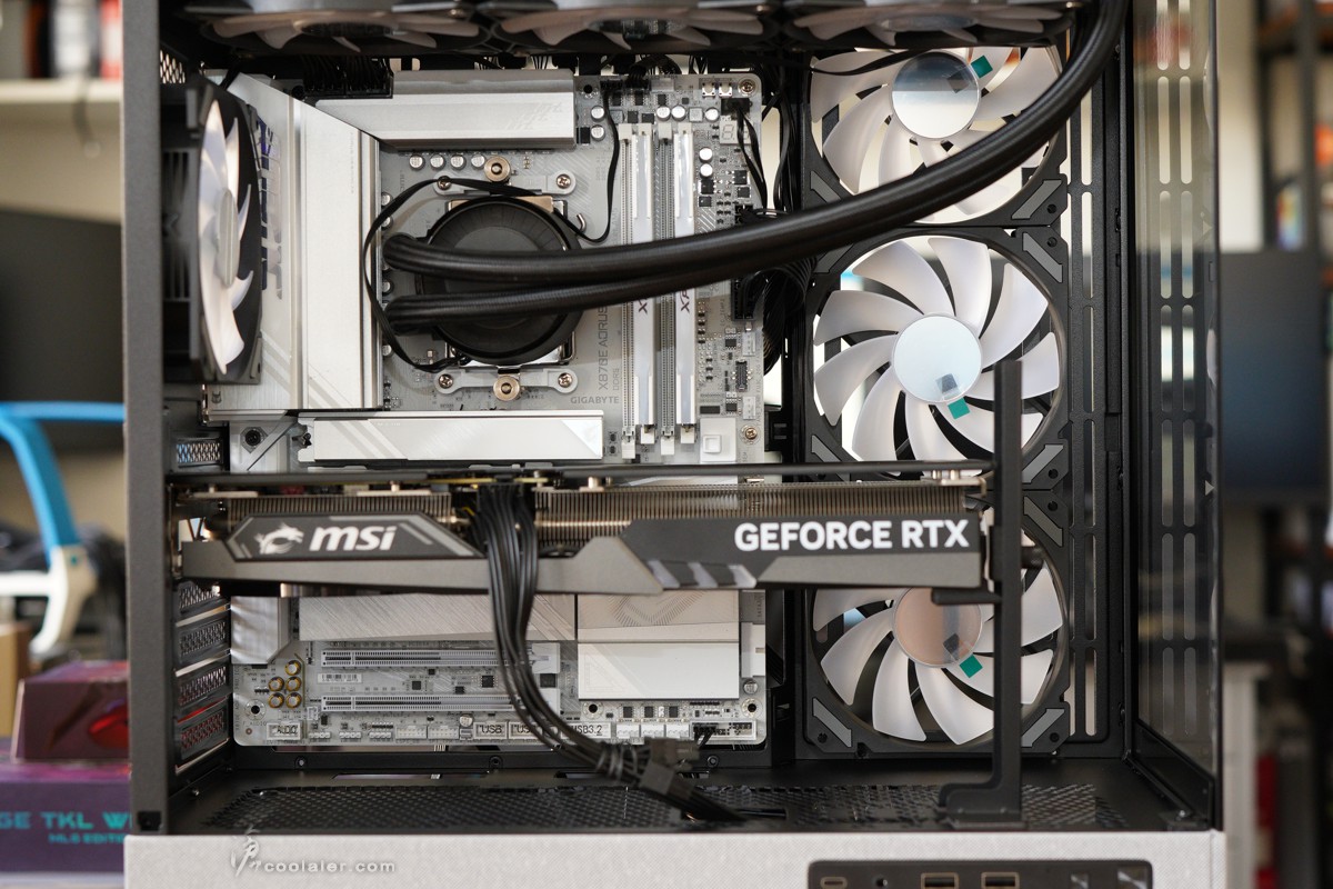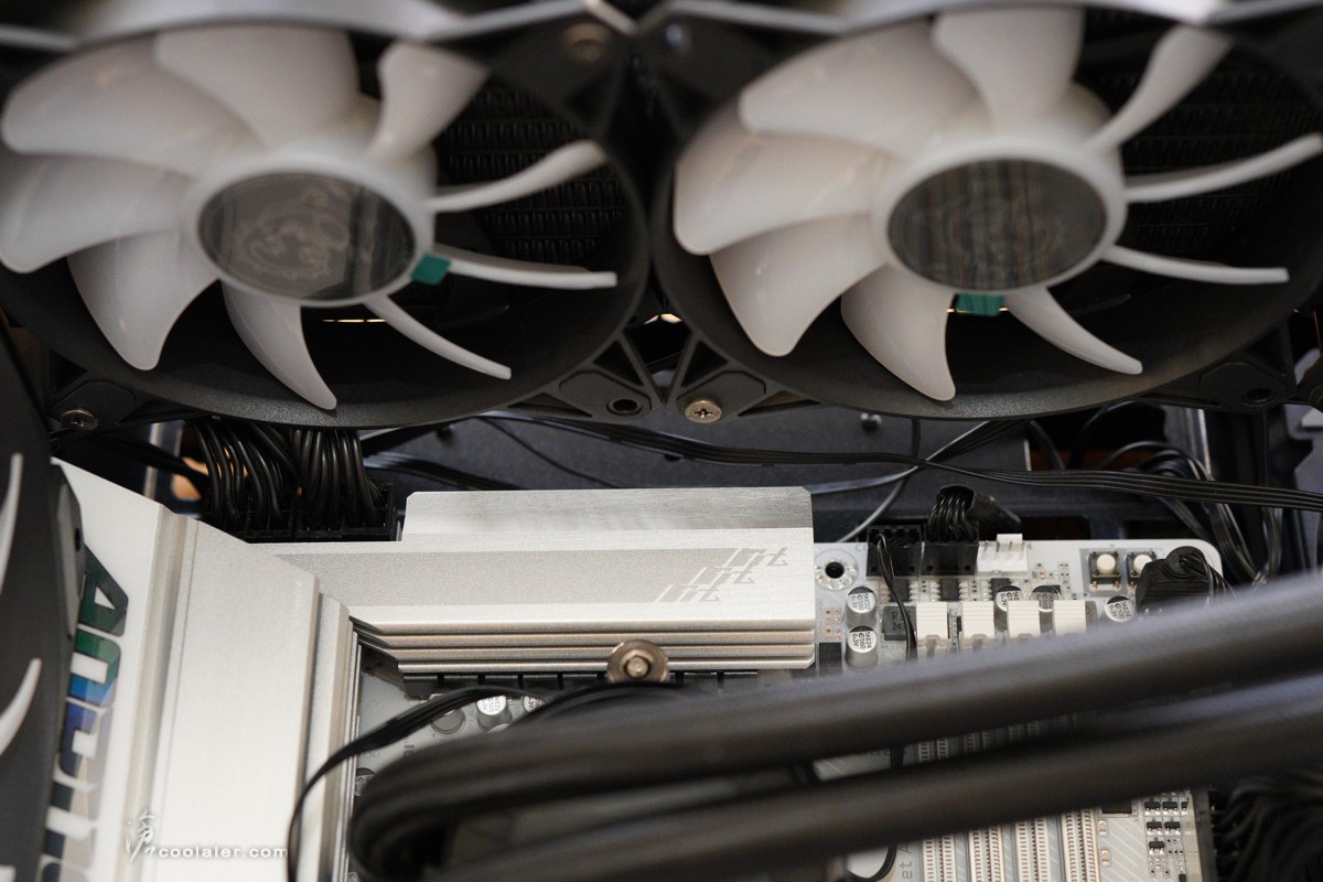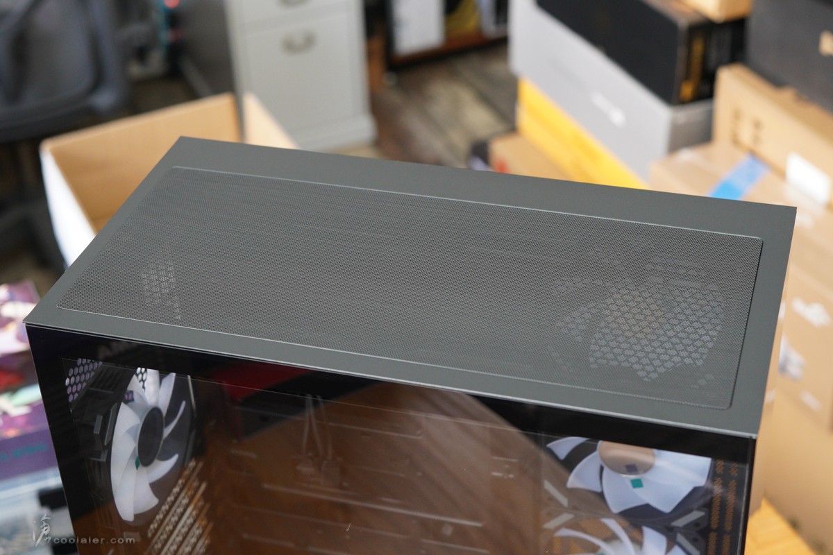 上方可安裝3顆12公分或2顆14公分風扇,也可裝36或28公分一體式水冷。
