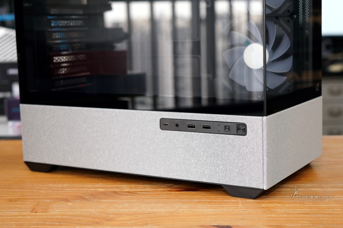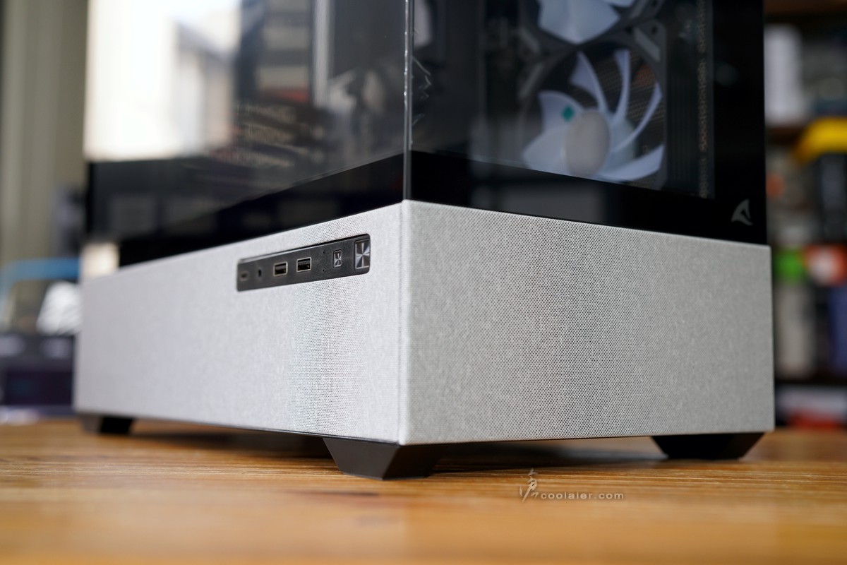 Sharkoon AK7 ARGB 在外觀設計上除了以視覺為取向的 270 度海景房,並在下層以布質展現不同於一般金屬或全玻璃的質感層次,黑色機殼搭配淺灰色布面,整體不顯突兀,反而增添一份低調的優雅感。這樣的配色也讓內部黑白混搭的硬體配置反倒顯得協調,即使不採用全白主題也能呈現平衡感。若偏好純白風格,AK7 亦有白色版本可選,不過下方仍為淺灰布料點綴,並不如黑白配來得活潑。