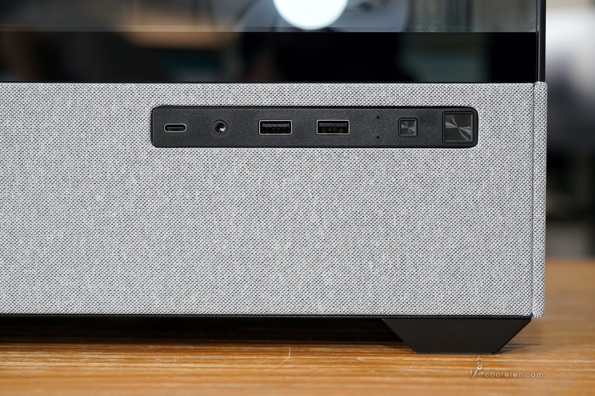 IO 的部分在左側下方,有 USB Type-C、複合式耳麥孔、2個 USB 3.0、燈效鍵、電源鍵。