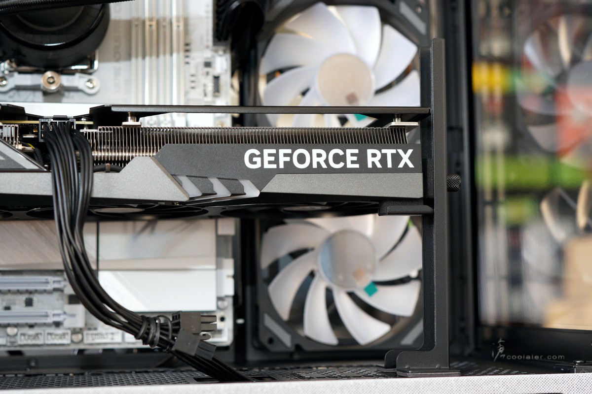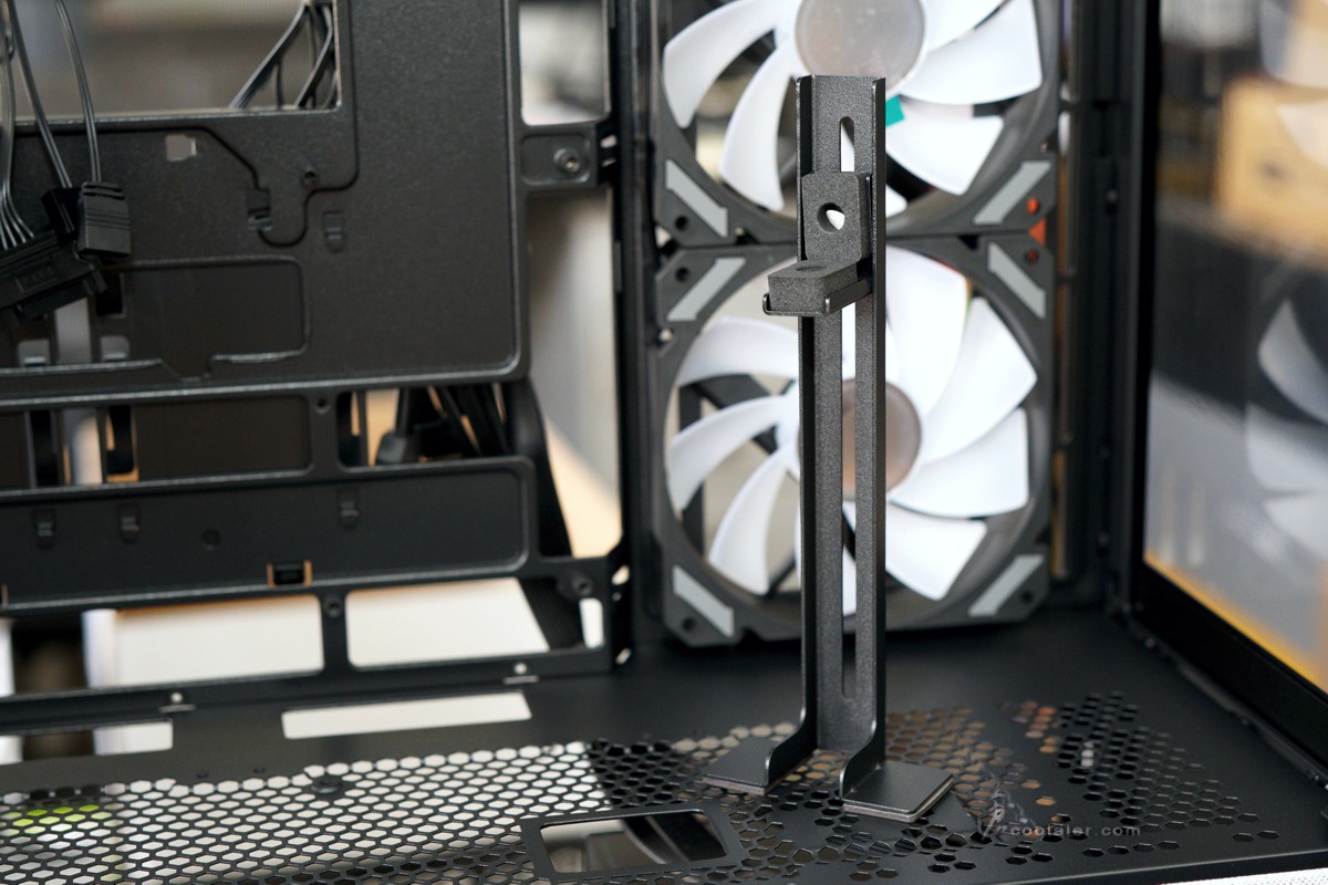 右側邊安裝顯卡支撐架,支撐架採用磁吸式固定,所以可以隨顯卡形狀並依需求放置,支撐時留意到別卡到風扇運轉。