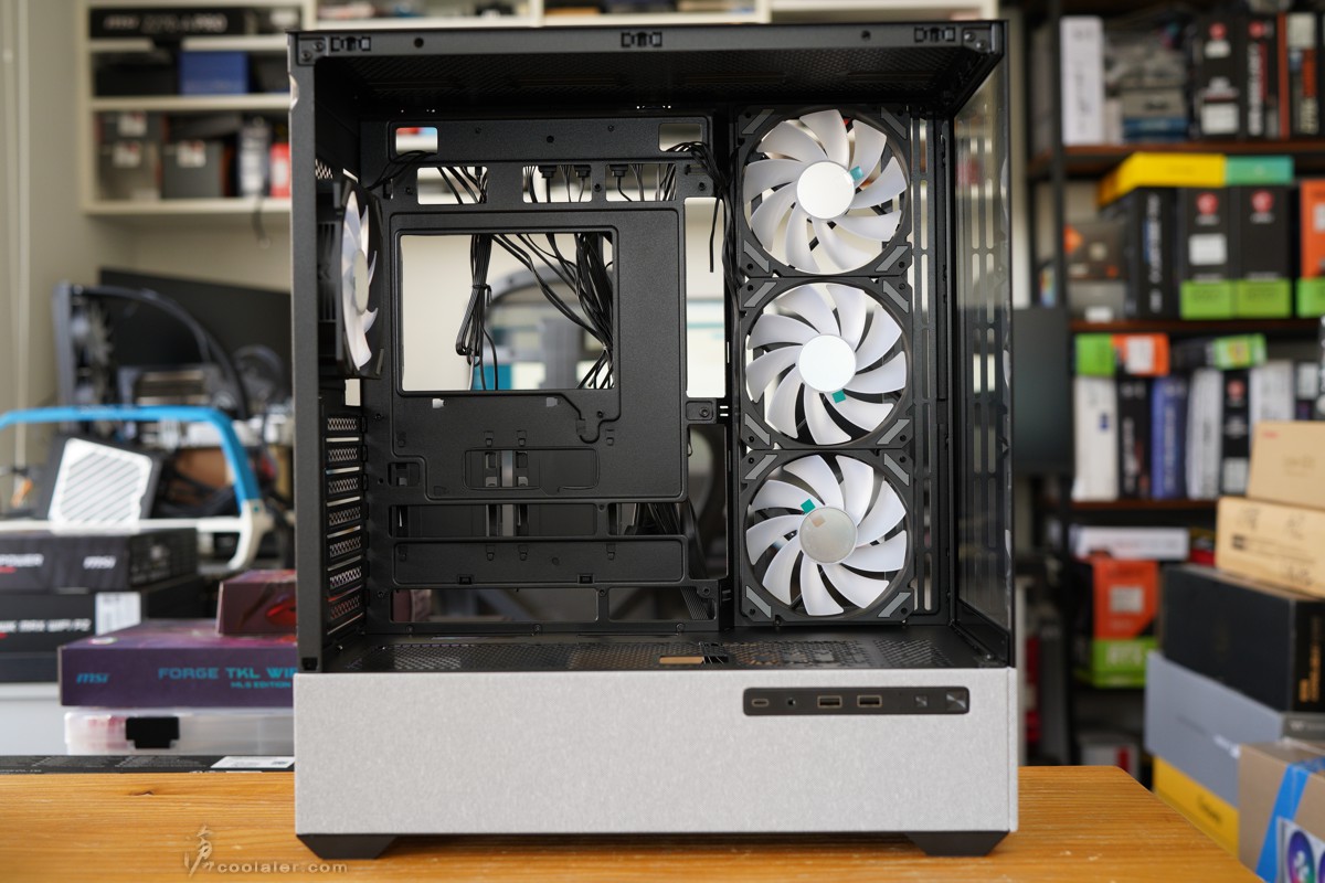 下方可以安裝2顆12公分風扇。風扇並不干涉內側走線孔,外側則會覆蓋到。