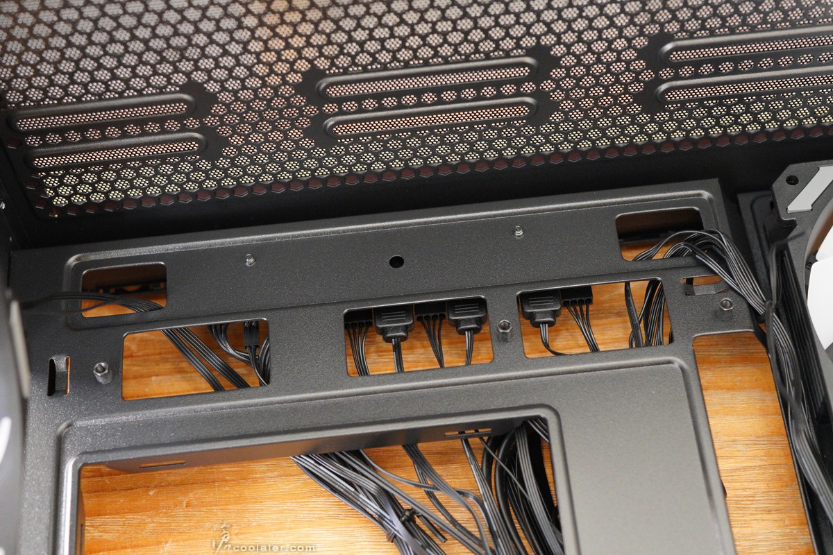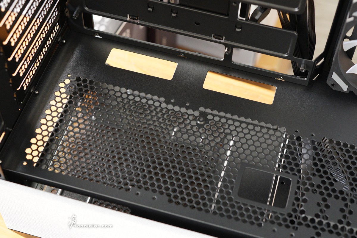 下方分倉上為大面積通風孔洞設計,在內側以及外側都有預留走線孔。