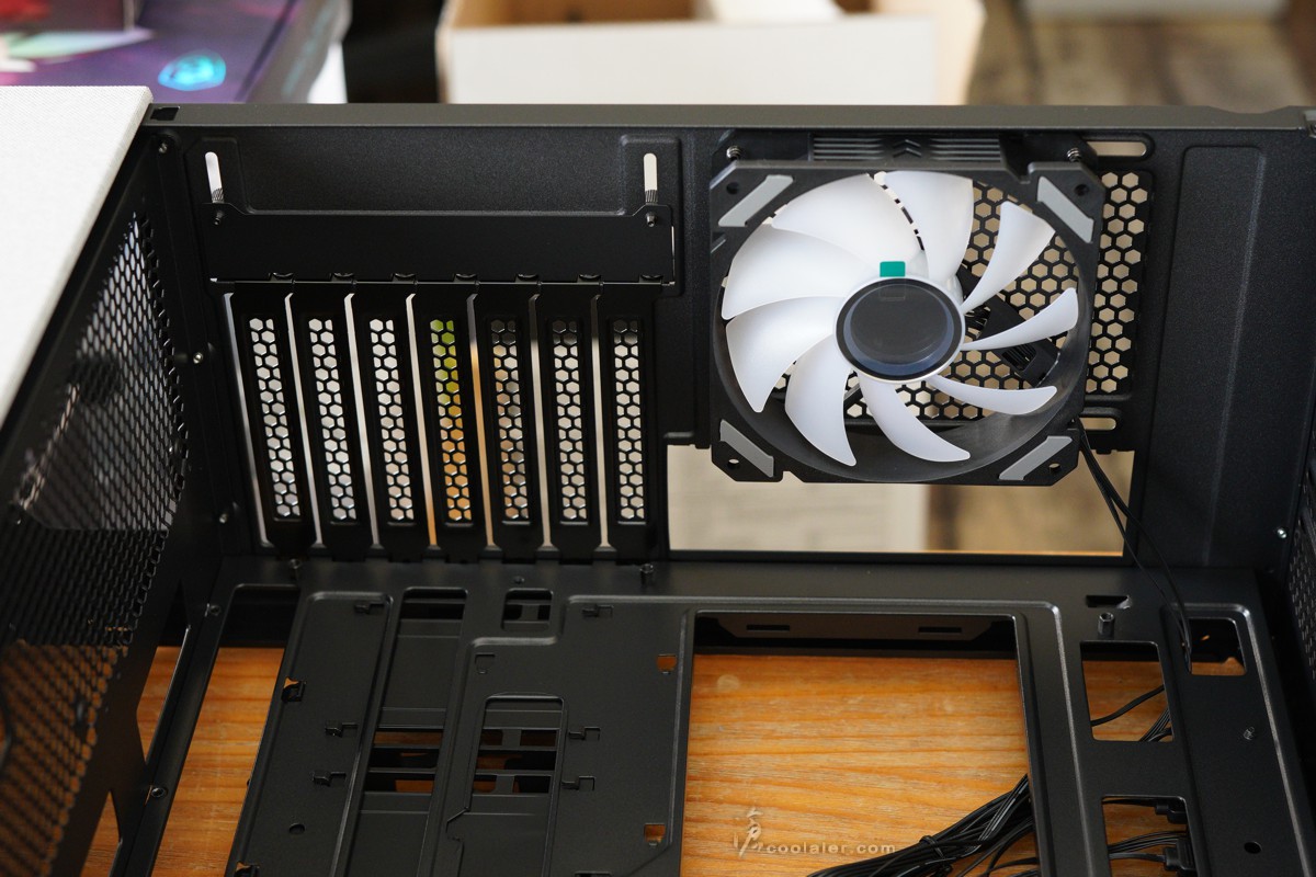 後方預裝1顆12公分 ARGB 風扇。擴充卡槽7個,採用可重複使用擋板。
