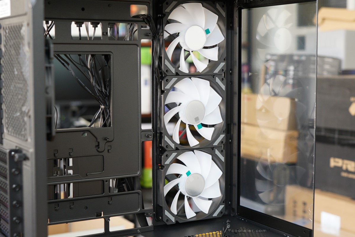 前面內側預裝3顆12公分 ARGB 風扇,採用反轉扇葉,預設為進風。