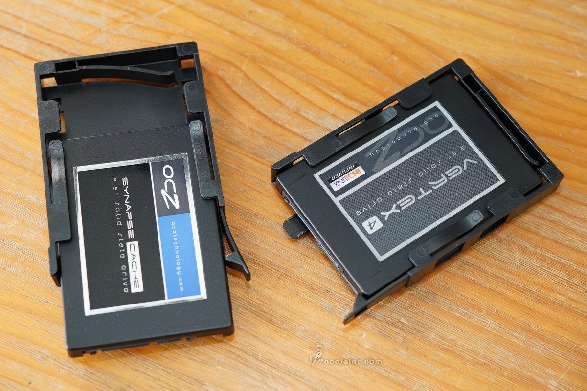 2.5吋安裝架免螺絲設計,只要將硬碟推到底就可以固定。拆卸只要卡扣外扳即可將硬碟推出。