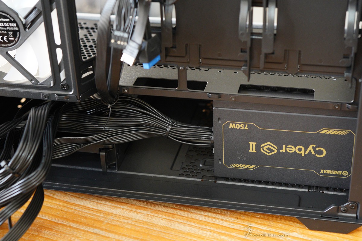 實際試裝,電源的部分離硬碟架還有段距離,多餘線材也比較有空間放置。