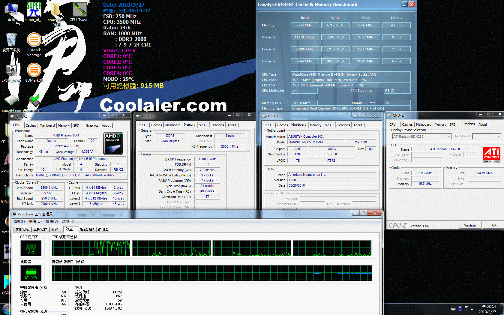 DDR3 2024 Read快要超過L3 cache https://www.coolaler.com.tw/coolalercbb/ASUS_M4A88TD_V_EVO_USB3/DDR3_2000/12.gif DDR3 2000 7-9-7-24-1T已經超過了 https://www.coolaler.com.tw/coolalercbb/ASUS_M4A88TD_V_EVO_USB3/DDR3_2000/6.gif