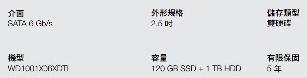 【WD Black² Dual Drive雙驅動硬碟規格一覽】